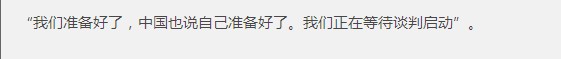 “我们准备好了,中国也说自己准备好了。我们正在等待谈判启动”。