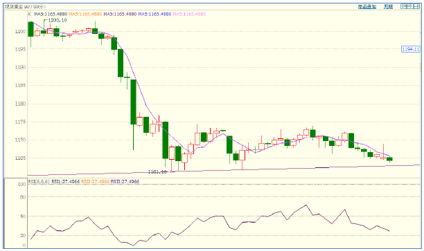 60min级别,黄金由前期平行下跌转变为对称惯性格局,价格围绕MA5均线对称震荡调整,操作上,以MA5均线上方择高沽空为主,上方压力位1173美元,下行不破反弹趋势线可适度轻仓搏反弹。