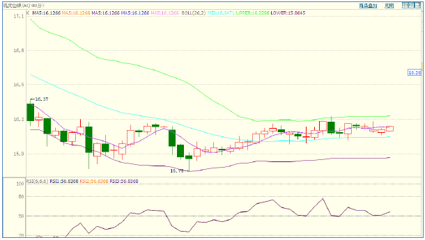白银隔夜录得一根长下影线后,最终日线翻红,空头力量有所衰竭,但空头趋势依旧保持完好,日内主要关注5日均线压力位16.38美元,反弹不破5日均线,后市依旧会继续下行,操作上,以逢高做空为主线。