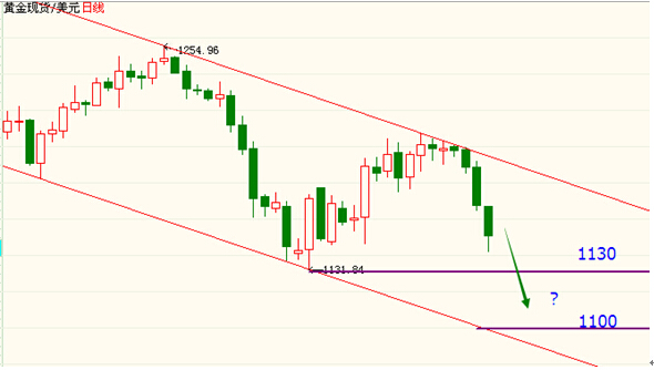 技术上来看,上周五黄金在原油下跌的带动之下,跌破三角形整理形态。如此,当前金价下方暂时还没有明显支撑,空头形态再配合周末瑞士公投失败,短期金价走低已经不可避免,早盘开盘走低顺势跌破强支撑1145,黄金新一轮寻底之路或就此打开。