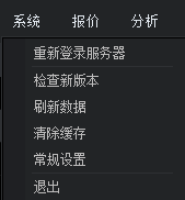 1)系统下有:重新登录服务器,检查新版本,刷新数据,清除缓存,常规设置,退出。